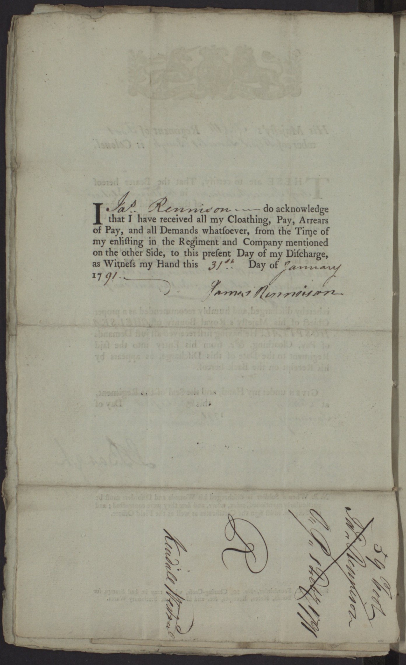 Shortly afterwards, however, he was taken out of the pension and was re-enlisted into the 6th Regiment of Foot as part of an augmentation of the British Army. He was discharged again 3 years later on 31 Jan 1791.