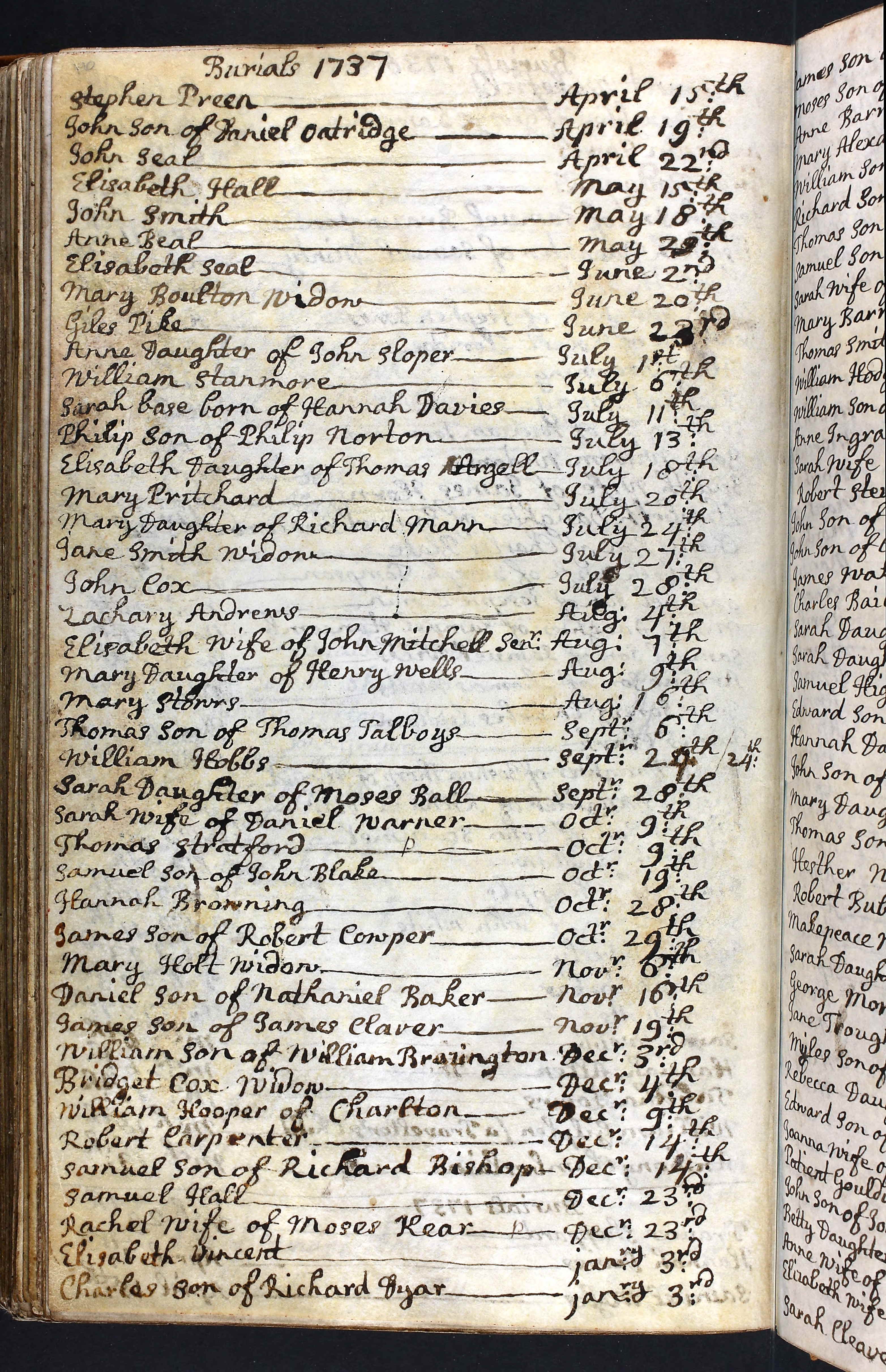 He then married 17470916 to Mary Cox, 1722 - 17890115 buried by the Parish, and buried Roger 17480218 aged almost 4 years.